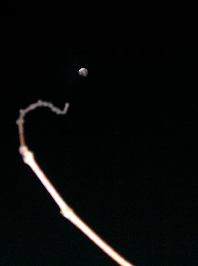 Une branche (de ma tonnelle) semble pointer de son bout l'astre lunaire.